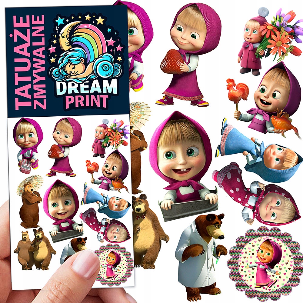 ТАТУЮВАННЯ ДІТЯЧІ ТИМЧАСОВІ МАША ТА ВЕДМІДЬ, ЯКІСНІ ВИЗЕРУНКИ ВЕДМЕДЯ, ЩО МОЖУТЬ МИТИСЯ