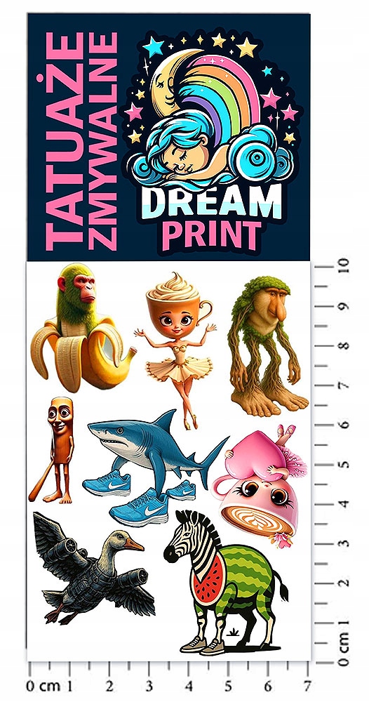 Завдяки тату Dream Print кожна дитина може почуватися особливою. Це ідеальний спосіб урізноманітнити дні народження, вечірки чи повсякденні розваги. Подаруйте своїй дитині радість мати тимчасові татуювання, які виглядають як справжні і водночас абсолютно безпечні та легко видаляються.
