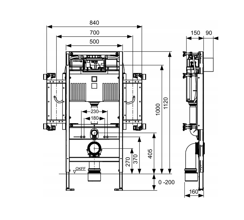 Модуль унітазу з установкою кнопок зливу "easy fit". Для монтажу на секціях TECEprofil або в передстінних стінах UA або перед цегляною стіною. Для безбар’єрної конструкції з високим кріпленням кераміки. Модуль із бічними сталевими рамами та інсталяційними кабелями для прокладки кабелю, включаючи кріпильний матеріал.