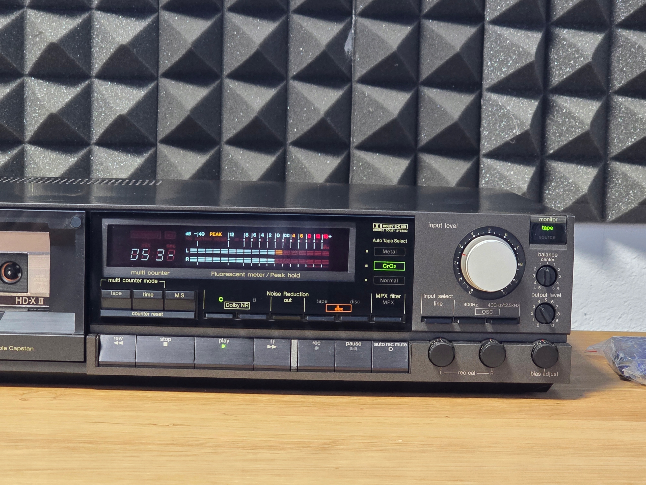 Технічні головки стрічки: 3 - подвійна головка для запису/ відтворення сокири, сокира 1x з подвійним рухом, денгінеса: 2 - 1x -пластинка, 1x direct Quart quetz Quap Quap, денгінес: 2 - 1x lectr Quarc Quarz QUAP -QUAP Тонний вал, 1 допоміжний двигун (головна візка) Синхронізація коливання: WRM: 0,022% DIN: ± 0,04% Швидкість стрічки: 4,8 см/с тип смуг: типи I, II, IV. Гц (± 3 дБ) Нормальний: 20-20 000 Гц (DIN) Chrome: 20 - 21 000 Гц (± 3 дБ) Chrome: 20 - 22 000 Гц (DIN) Метал: 20 - 23 000 Гц (± 3 дБ) Метал: 20 - 24 000 Гц (DIN) Рекрут: Chrom DB DB) Сигналізація: 70 -ти дистанція (без зовнішньої дистанції CC ( Dolby C: 78db (CCIR) DBX: 92 дб Частота делеції: час прокрутки 105 кГц (C90): прибл. 120 секунд. Автоматична зворотна передача: не пошук пісень: Так, зменшення шуму: Dolby B, C та DBX MPX Фільтр: Так Фейдер: Немає управління висотою звуку: не синхронізований запис CD: не спеціальна система обладнання 3 головки з приводом управління задньою смугою з подвійним каштановим та прямим керуванням хвилі TON, керованою побудованим -in -вимірювальним карб -мірним переносним керуванням (400 Гц та 12.5 кГц), відокремленого рівня Prement Prement Predize Premannet Assilarnate Assilal. Параметри зменшення шуму (DBX, Dolby B і C) Індикатор рівня флуоресценції з функцією зупинки пікового значення (трикольор) цифрового багатофункціонального лічильника стрічки (лічильник, час, час, час, пошук) Шляхи Регульований рівень виходу