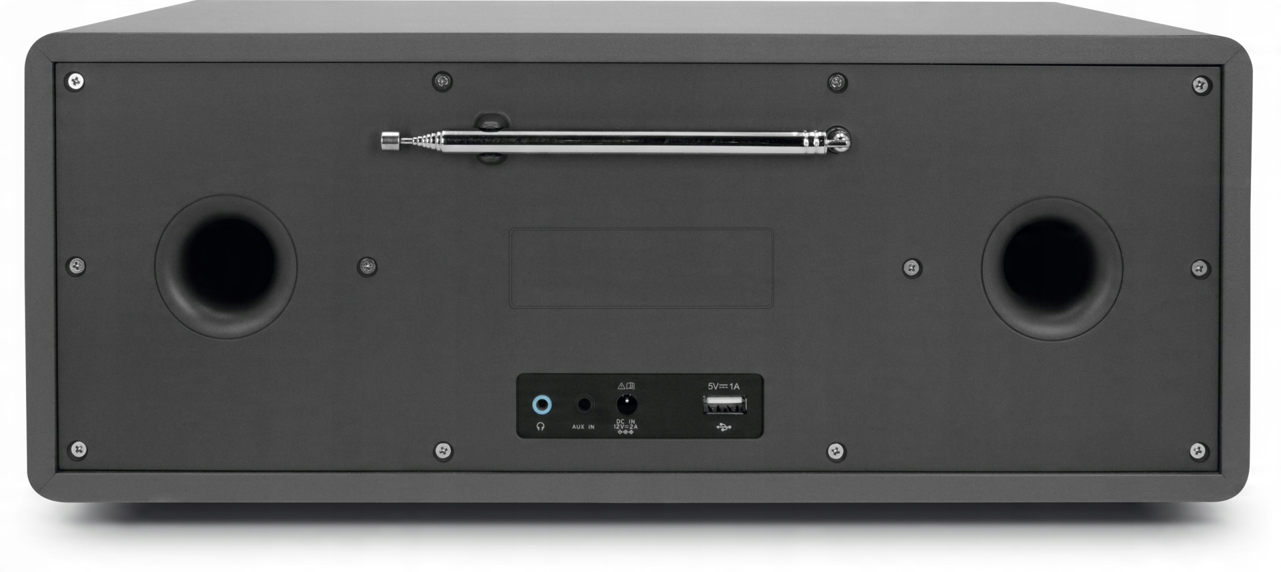 Два стереодинаміки із загальною потужністю 30 Вт (2 x 15 Вт) звучать чисто та чітко завдяки басово-рефлексному б> валторна, музика в ній набуває глибини і соковитості. Телескопічна антена гарантує покращений прийом сигналу DAB+ і FM. На невеликій відстані від передавачіврадіо DAB+ не потребує його зняття -сигнал чистий і має мінімальну частоту помилок.