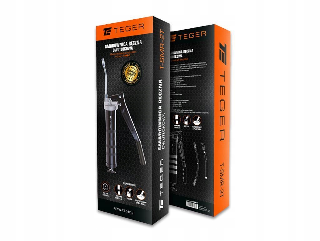 TEGER ДВОПОРШНЕВЕ РУЧНЕ ЗМАЩУВАННЯ Високоякісний ручний мастильний пістолет, який забезпечує втричі більший об’єм мастила (*порівняно зі звичайними мастильними пістолетами) завдяки використанню подвійного поршня та двох дренажних отворів, заощаджуючи час і витрати на робочу силу.