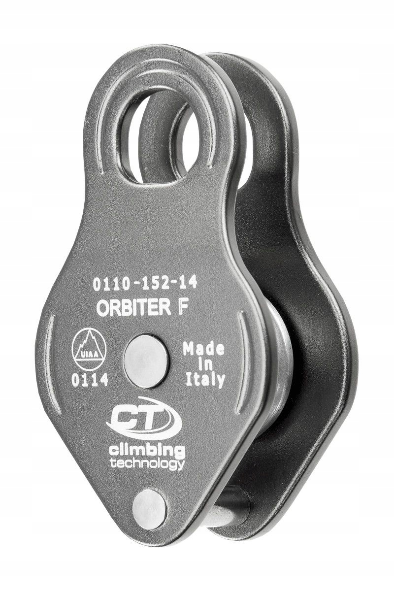 Climbing Technology Orbiter F — це міцно виготовлений і надійно працюючий шків із фіксованими кришками. Він ідеально підходить для різних типів систем витяжки, пропонуючи не тільки бажану довговічність, але й тиху та плавну роботу завдяки використовуваним самозмащувальним втулкам. Великими перевагами шківа є його компактні розміри, невелика вага та отвір, що дозволяє легко прикріпити карабін.