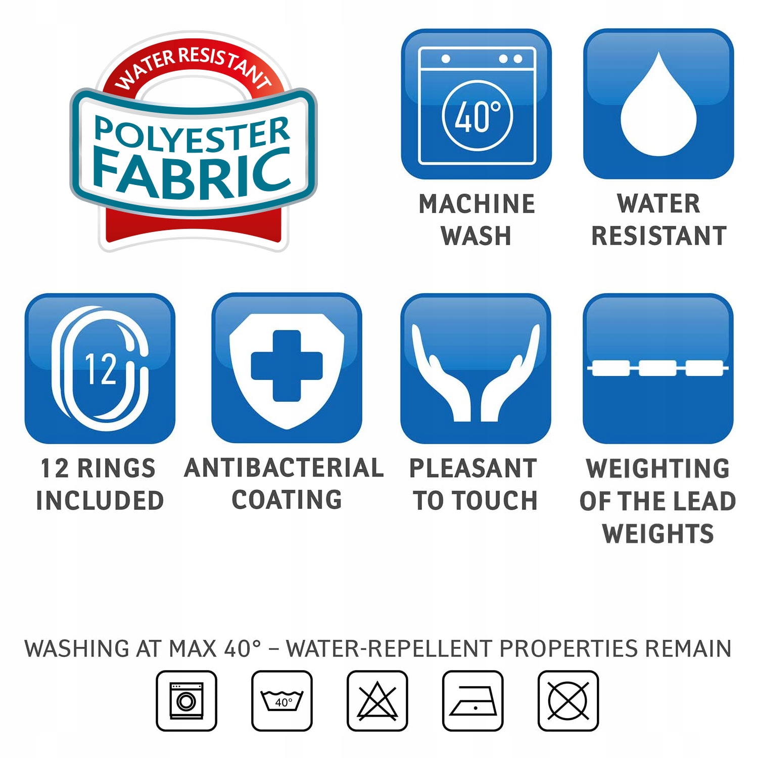 Текстильна завіса для душу зшита по всьому колу та оснащена посиленими пластиковими люверсами