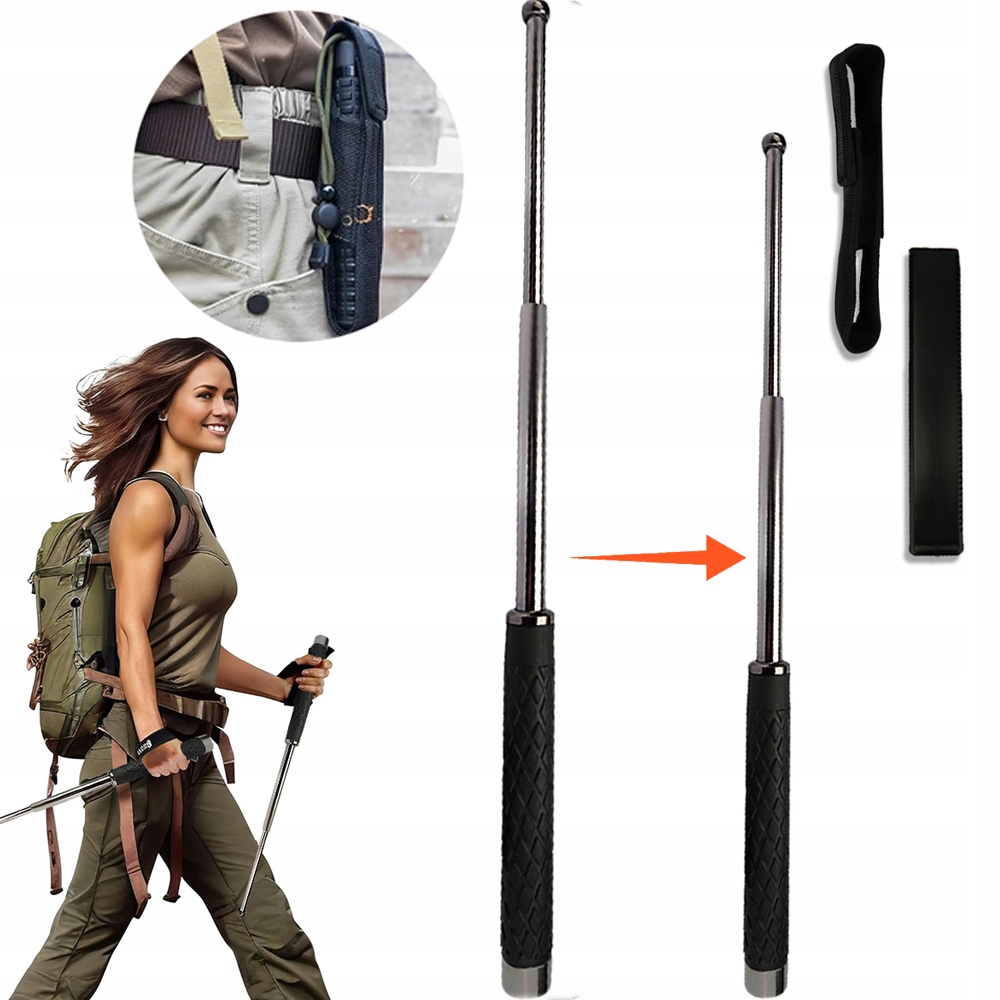 ⏺- палиця виготовлена з вуглецевої сталі, яка має високу твердість, стійка до зносу і удару, міцної і міцної, а поверхня покрита матовим чорним покриттям, що стійке до корії До ефективного інструменту для самооборони (удар, важелі, задухи), а також може бути корисним для знищення перешкод та вибивання скла в надзвичайних ситуаціях. Довжина палиці розширюється до 21 дюйма з сильним рухом.