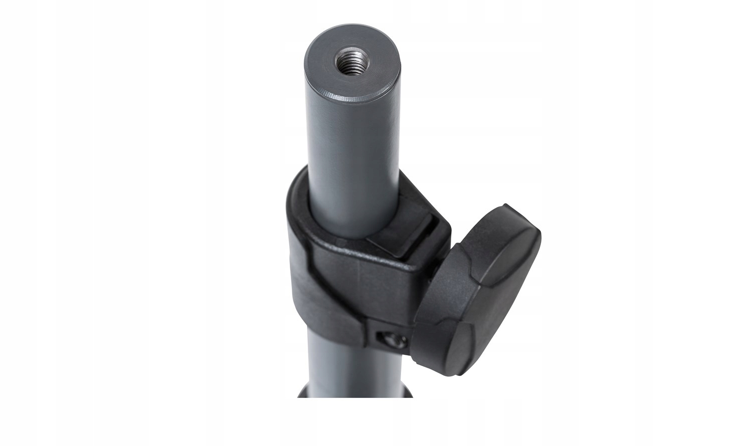 Штатив виготовлений з міцної сталі з порошковим покриттям, а приварений сталевий кріпильний ковпачок (різьба 10 мм) забезпечує довговічність універсального штатива. Коли штатив не використовується, він компактний і важить 6 кг.