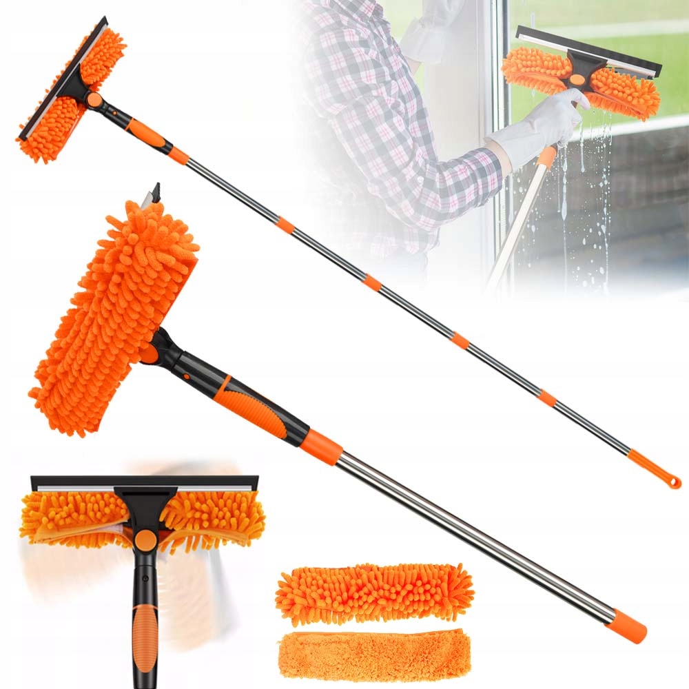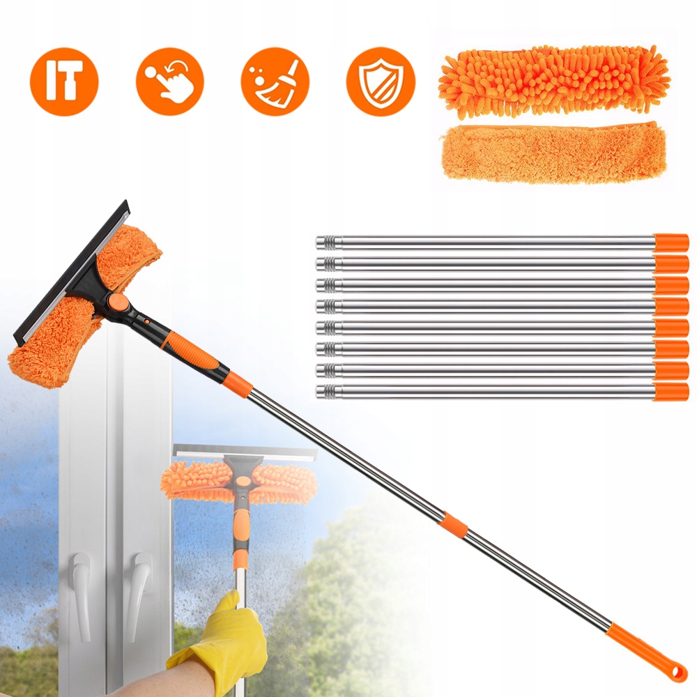 Легко відрегулюйте положення скребка натисканням кнопки. Ідеально підходить для очищення нестандартних вікон і скла, скляних поверхонь, стін, дзеркал, вікон автомобілів, сонячних батарей і високих внутрішніх/зовнішніх вікон. Навіть чистка вашого човна стає дитячою грою!