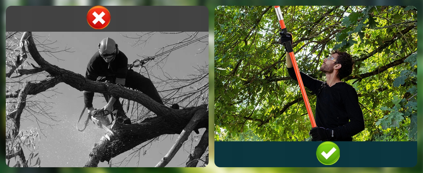- 🍃, що застосовується з двома додатками, його можна використовувати як ножиці, які підходять для різання менших гілок, або як пилка, яка ідеально підходить для більш товсті гілки.