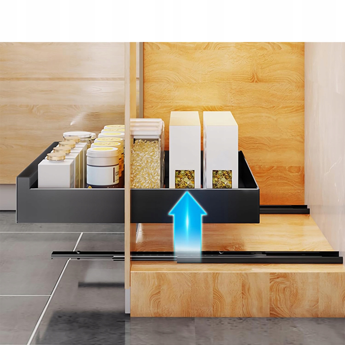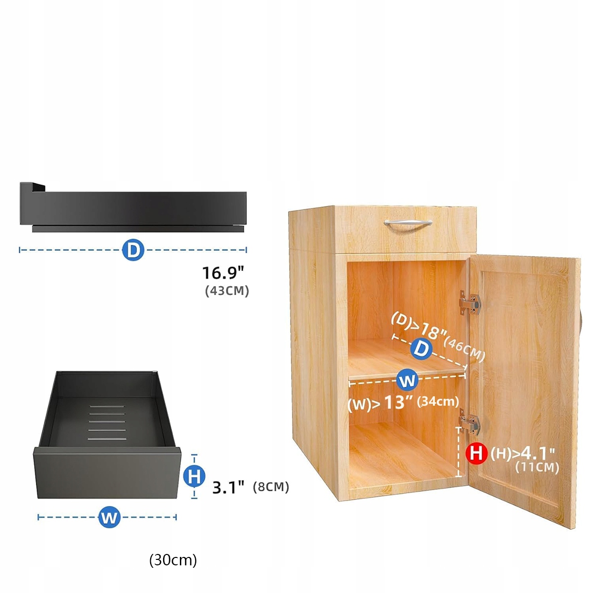 Телескопічний ящик, виготовлений з вуглецевої сталі, висувна ящик для зберігання в кухонних шафах, висувна ящик (30 см завширшки х 43 см.
