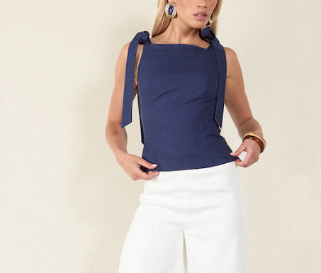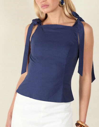ТЕМНО-СИНІЙ ГЛАДКИЙ ТОП НА БРЕТЕЛЬКАХ PRETTYLITTLETHING 38
