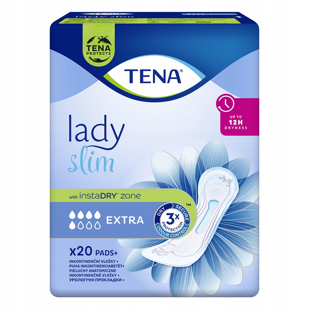 TENA Lady Slim Extra ідеально підходить для використання при легкому та середньому нетриманні сечі. Зона InstaDRY™ швидко вбирає рідину, а надзвичайно абсорбуюча вставка закриває її глибоко всередині подушечки, подалі від шкіри. Забезпечує потрійний захист від протікання, неприємного запаху та вологи. Завдяки гнучким сторонам, які м'яко адаптуються до форми тіла.