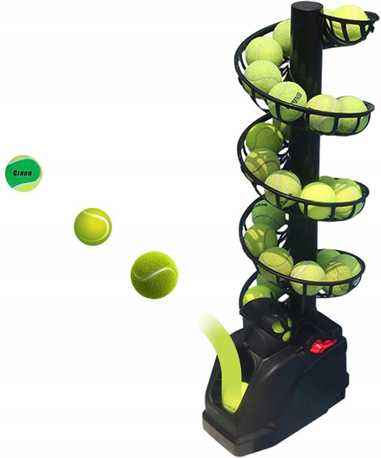 Портативна машина для обслуговування тенісних м'ячів є ідеальним рішенням для початківців, дітей та всіх, хто хоче вдосконалити свої тенісні навички. Безпечний та простий у використанні, дозволяє подавати кульки кожні 4 секунди. Машина вмістить до 30 тенісних кульок, що значно сприяє тренуванню без необхідності часто піднімати м'ячі.