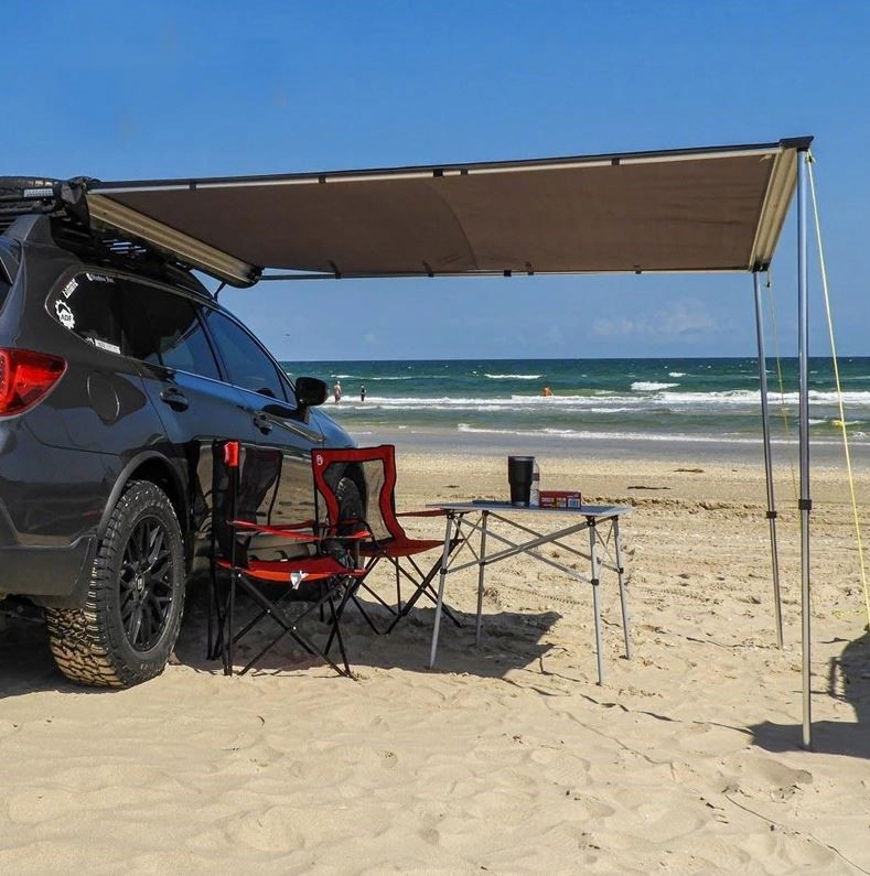 У розкладеному стані тент досягає площі 2х3м. Це дає нам багато простору, під яким ми можемо поставити стіл зі стільцями та смачно пообідати просто неба. Ідеально захищає від дощу завдяки водонепроникному покриттю.