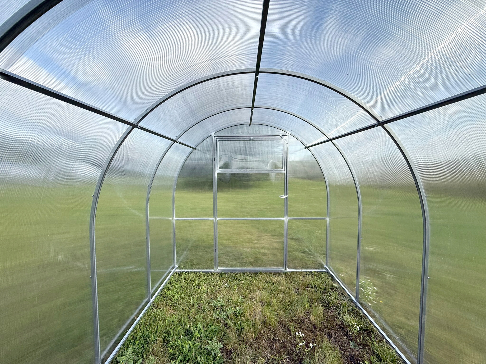 Теплиця має двоє дверей з кожного боку. У двері теплиці вже встановлені вікна.