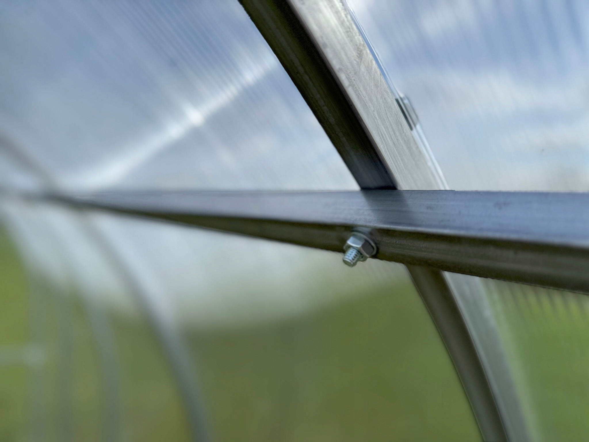 Для отримання максимальної жорсткості передня та задня сторони теплиці зварені, арки рівномірні, без вузлів з’єднання.