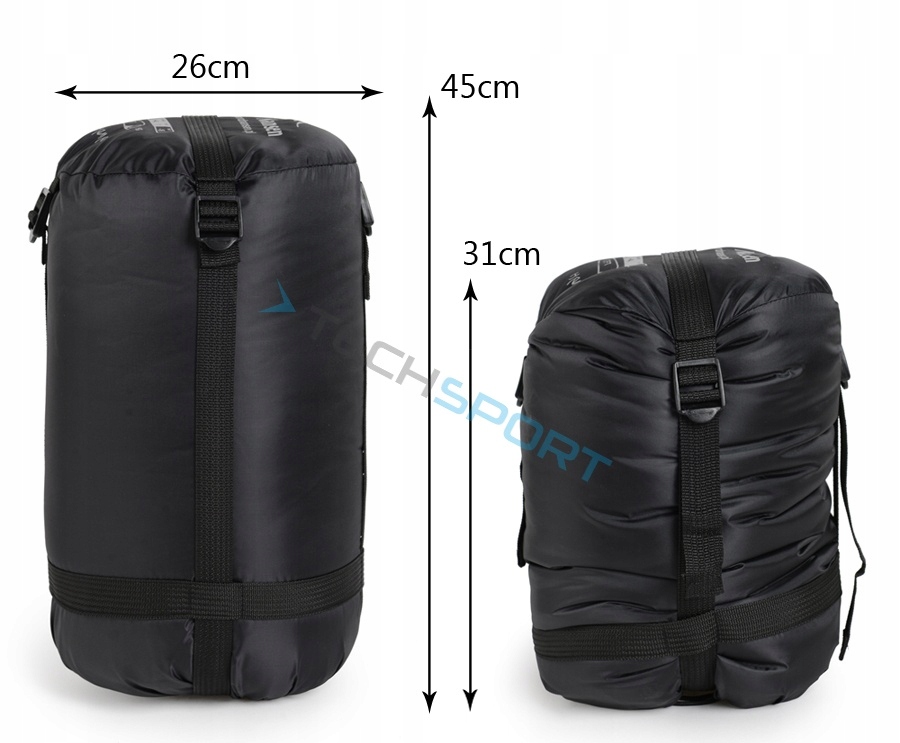 - Розміри спального мішка після упаковки: 26 x 45-31 см