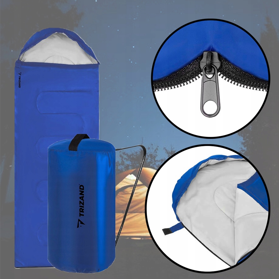 Спальний мішок TRIZAND ідеально підходить для багатоденних гірських походів і походів. Крім того, його можна використовувати як запасну теплу ковдру. Виріб надзвичайно міцний завдяки використанню високоякісних матеріалів: 210T Waterproof Ripstop Polyester та Hollow Fiberнаповнення, яке не вбирає вологу та є протиалергічним.