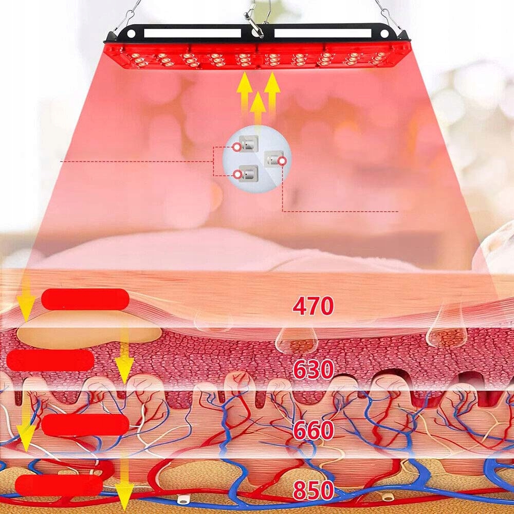 - Наша інфрачервона терапія для тіла з 96 світлодіодами має довжину хвилі 48660 нм червоного світла та 48850 нм ближнього інфрачервоного світла (примітка: 850 нм світло виглядає як дуже глибокі червоні світлі плями).