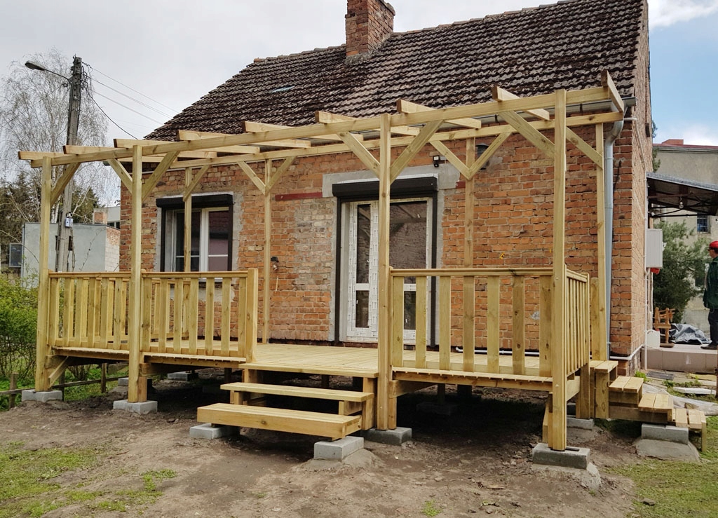 Красива секційна тераса для легкого монтажу! Призначений для будь-якого голландського будинку. Лише кілька елементів, готових до з’єднання! Ідеально підходить для голландського будинку, кемпінгу, альтанки або навіть будинку! Міцна конструкція та просочення роблять його дуже міцним!