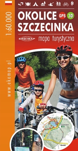 Картографічна частина: туристична карта околиць Щецинека та Борне-Суліново, легенда мовами: польською, німецькою та англійською.