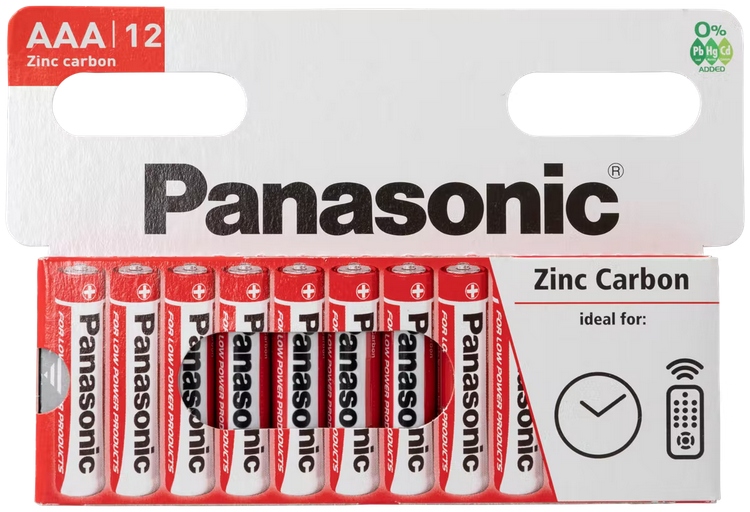 У 2012 році батареї Panasonic ZINC CARBON стали набагато екологічнішими. У 1989 році Panasonic вдалося повністю виключити ртуть. Кадмій був виключений у 1991 році. Однак труднощі в масовому виробництві безсвинцевих елементів, пов’язані з міцністю та стійкістю до ерозії цинкових корпусів елементів, перешкоджали розвитку технології виробництва безсвинцевих елементів протягом тривалого часу. У результаті багаторічних досліджень та інновацій Panasonic нарешті вдалося розробити технологію, яка досягла високої продуктивності та дозволила масове виробництво акумуляторів. Ці зусилля призвели до комерціалізації високопродуктивних цинк-вуглецевих акумуляторів з нульовим вмістом свинцю. Зараз вони доступні для продажу в понад 100 країнах світу.