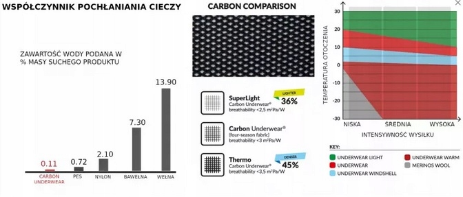 Змішування відповідних матеріалів дозволяє повністю відокремити піт від шкіри за межами тканини. SIXS – це компанія, яка запатентувала використання вуглецевих волокон. Завдяки цьому: