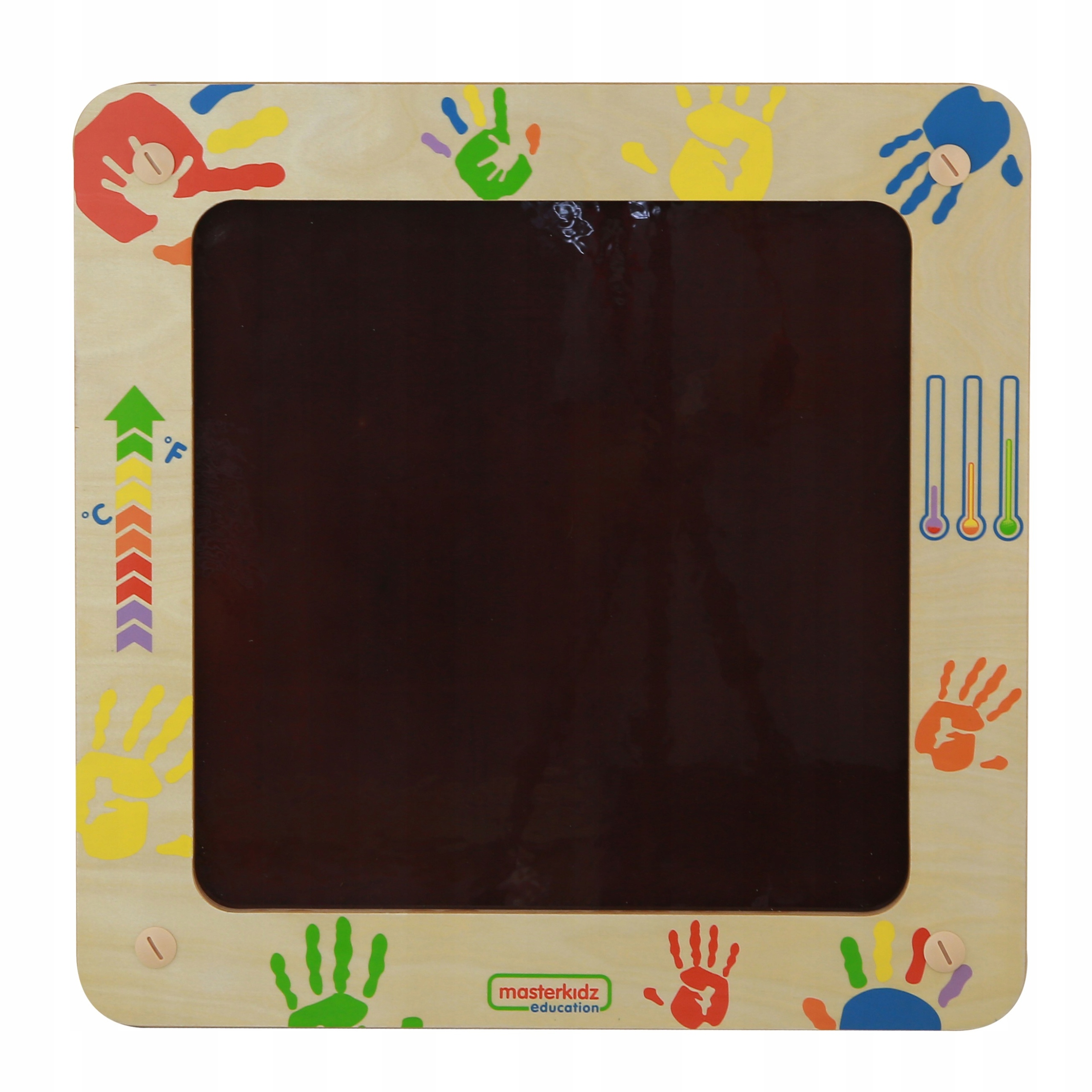 Це незвичайна іграшка, яка порадує дітей своїми кольорами. Коли діти прикладають до нього теплі руки або пальці, на його поверхні з'являються різнокольорові відбитки, які зникають через кільканадцять секунд. Це цікавий спосіб дізнатися про температуру та людське тіло. Діти можуть перевірити, чи їхні руки тепліші чи холодніші за інших, і намалювати смуги та візерунки на дошці. Дошка змінює кольори під дією тепла, що стимулює зір і допитливість дітей.