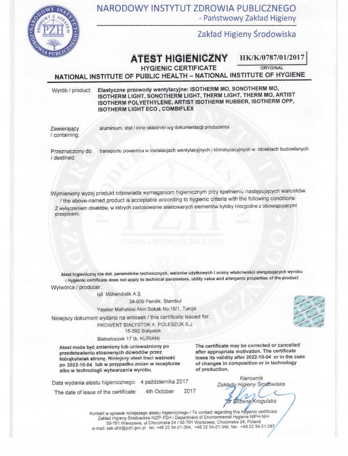 Продукція має гігієнічний сертифікат Національного інституту гігієни № HK/K/0787/01/2017.