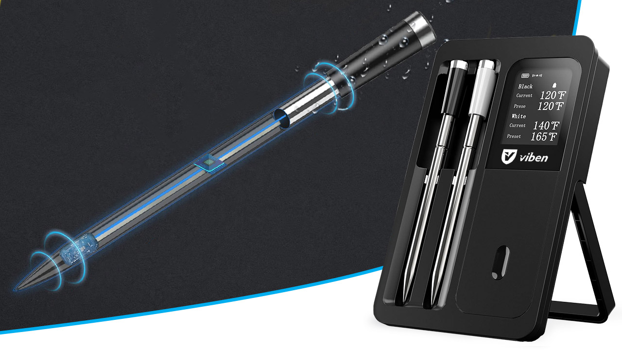 Точне приготування їжі у ваших кінчиках! термометр для бездротового м'яса Viben - незамінний інструмент для кожного вентилятора на грилі та приготування їжі. Оснащений двома вдосконаленими зондами , забезпечує точне вимірювання температури, що дозволяє приготувати ідеальні стейки, смажені та інші страви. Завдяки бездротового з'єднання Ви можете контролювати температуру м'яса навіть з відстані 60 м, а мобільний додаток полегшує моніторинг процесу приготування. водостійкість IP67 гарантує довговічність та безпеку використання.