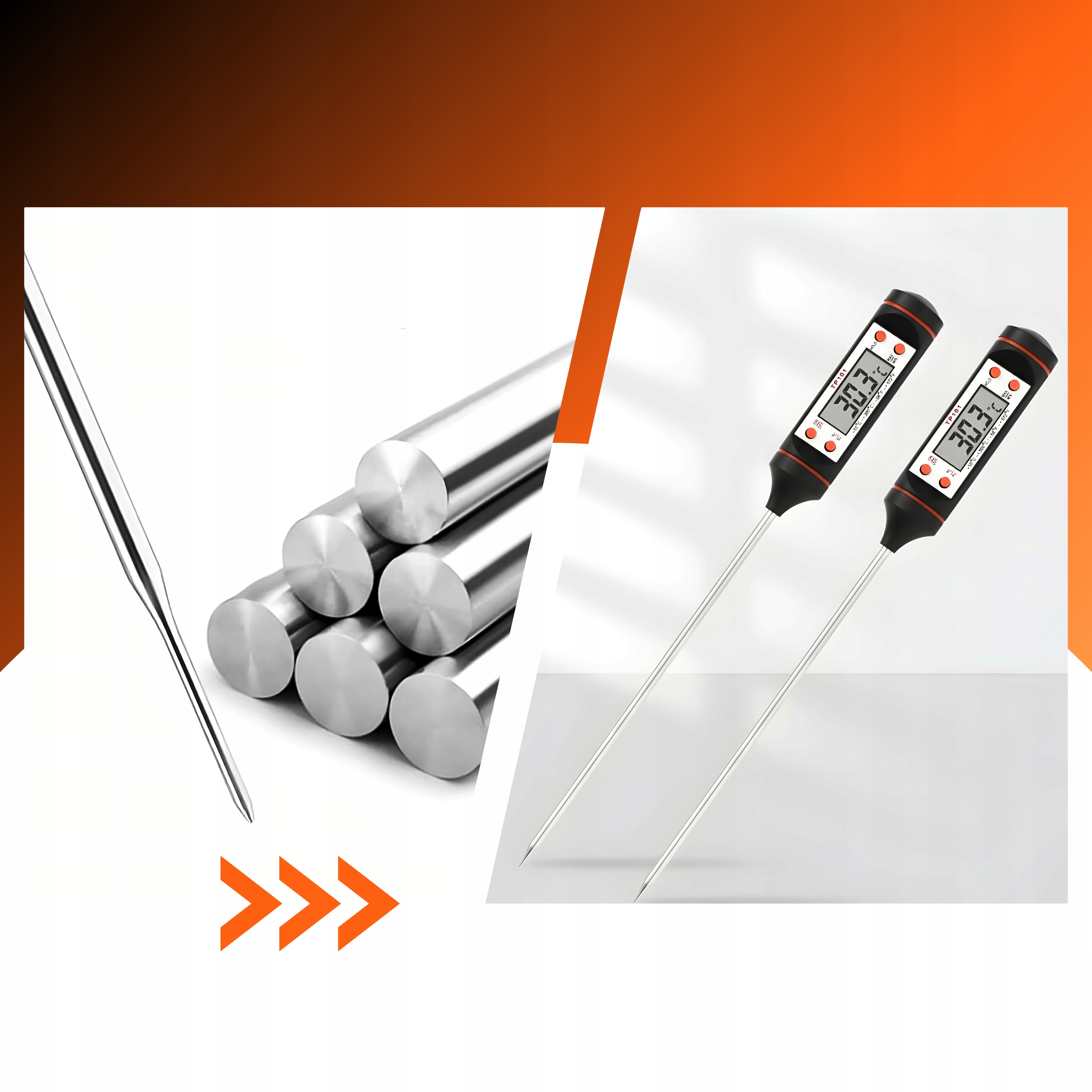 Зонд термометра виготовлено з високоякісної нержавіючої сталі, завдяки чому він стійкий до корозії, легко чиститься та повністю безпечний у контакті з їжею.