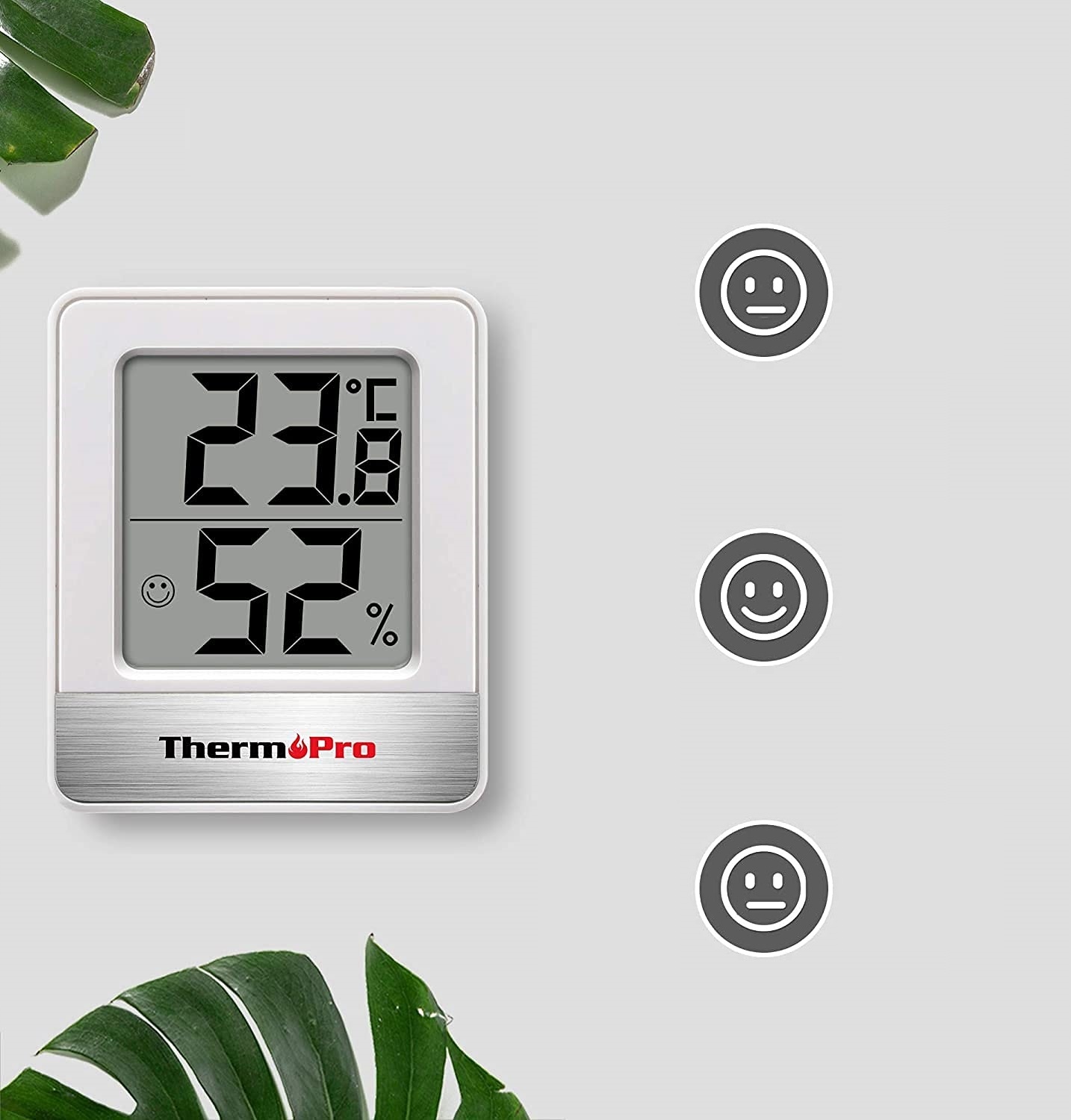 термометр, оснащений великим, розбірливим РК -дисплеєм, що вказує на температуру, вологість та загальний комфорт у кімнаті.