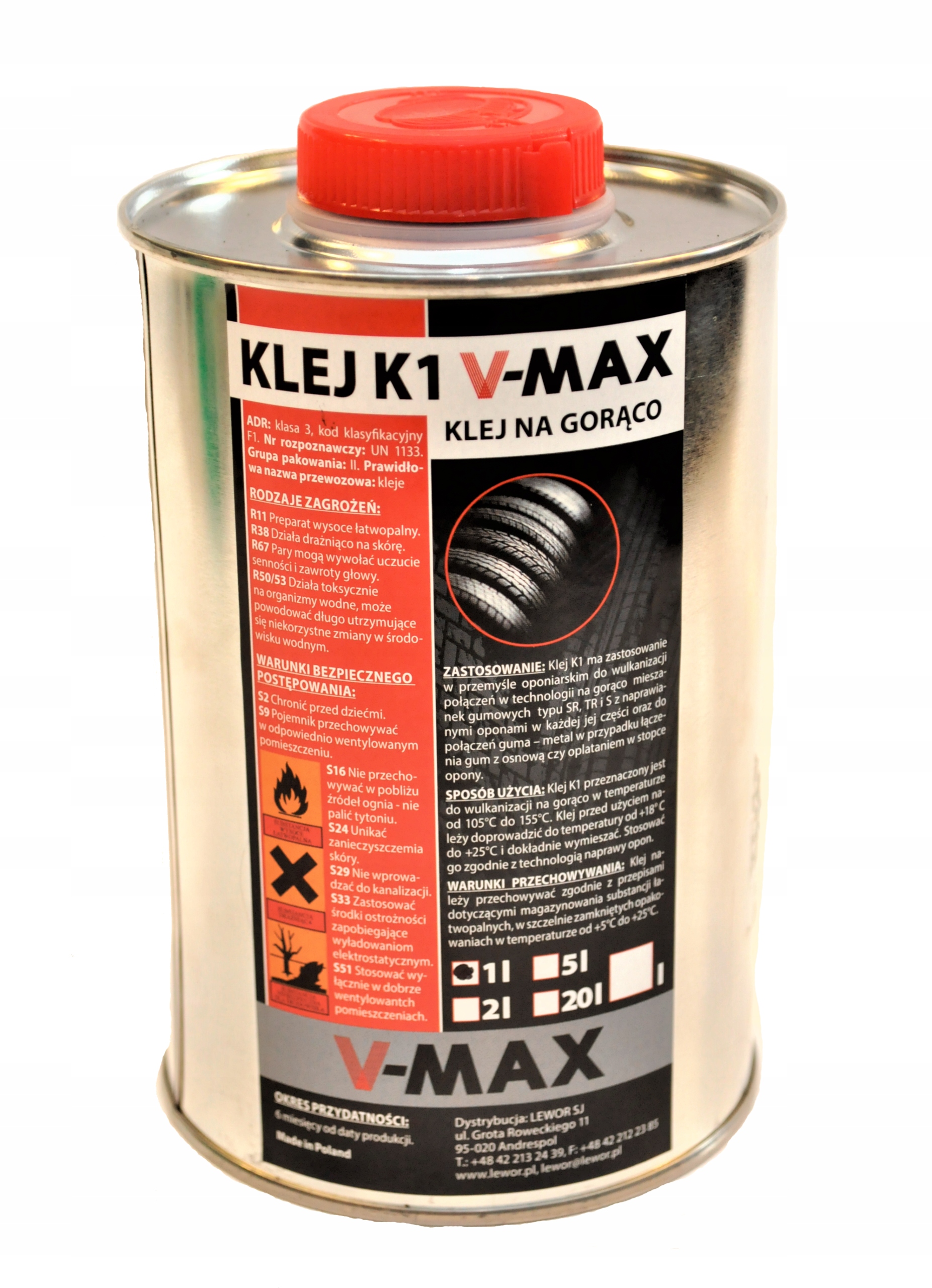 1 Л УПАКОВКА ГАРЯЧОГО КЛЕЮ V-MAX K1 (Температура вулканізації: від 105oC до 155oC, Максимальна температура нагріву: 80oC);