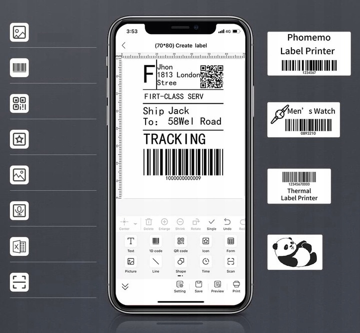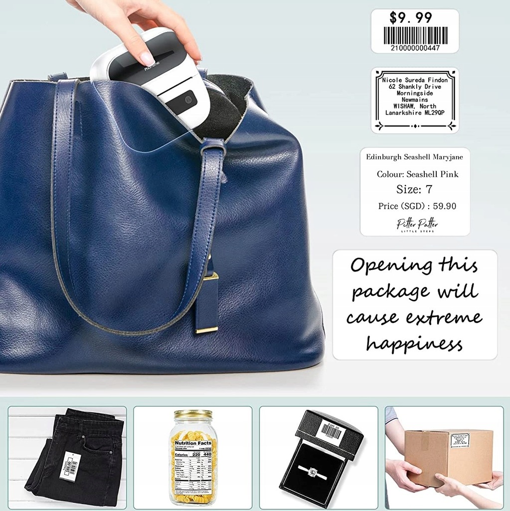 Інтелектуальний принтер самоклеючих етикеток і кодів із широким спектром застосування. Його можна використовувати вдома, в офісі, у школі та на малих підприємствах.