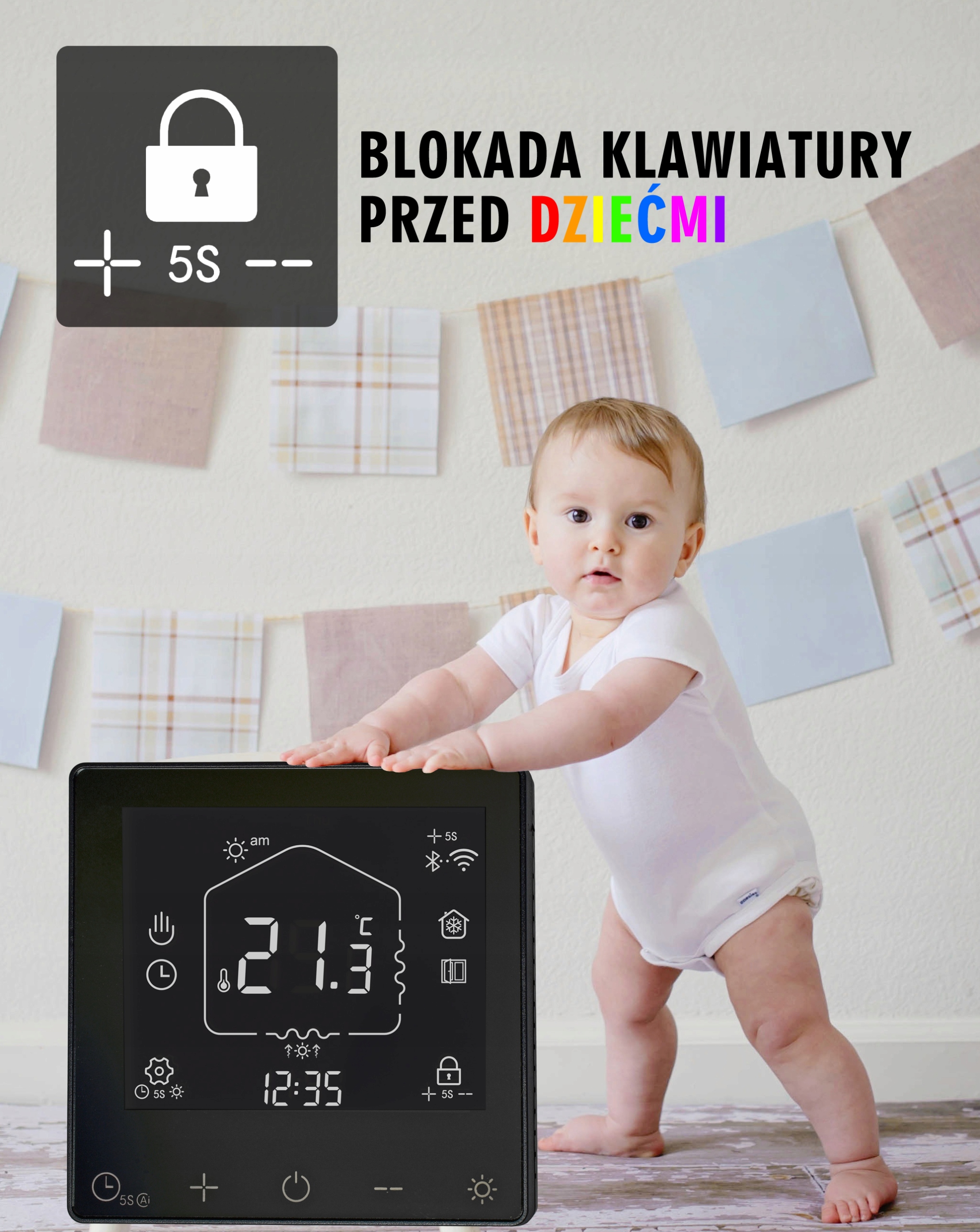 Термостат із функцією Wi-Fi дозволяє контролювати температуру за допомогою телефону чи планшета з пристроїв на базі Android або iOS, зокрема через Додаток SMART LIFE, TUYA та інші.
