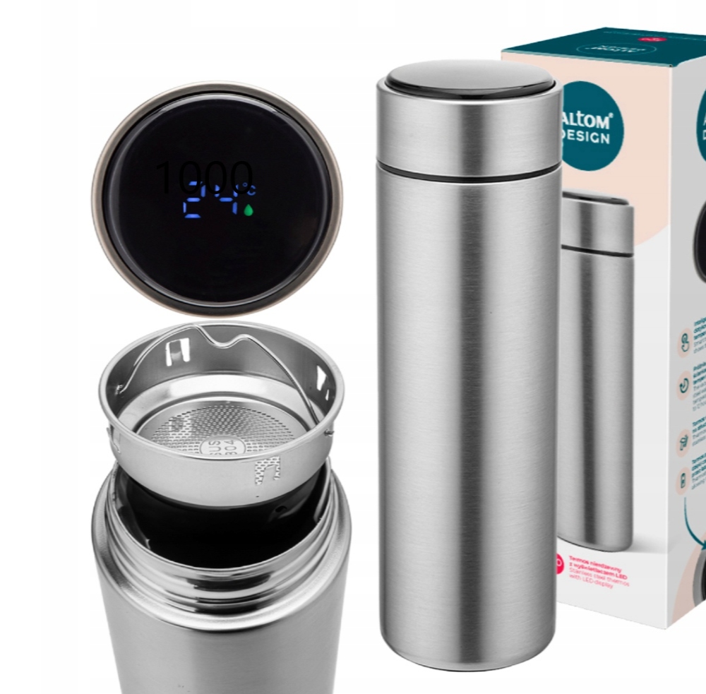 Багато хто з нас віддають перевагу екологічним рішенням. З цієї причини дизайн Altom підготував теплову кружку, , яка дозволить безпечну передачу каву або чай. Чорний Термос оснащений w дисплея світлодіод , що показує температуру напою. Додатковий актив - це закриття, яке забезпечує жорсткість. кружок з впевненістю буде працювати у вашому домі.