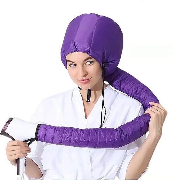 Термозаглушка з посиленим покриттям для будь-якого типу сушарки для рук. Незамінний для посилення ефекту від використання масок і кондиціонерів, для прискорення стійких завивок і для жінок, які використовують бігуді для укладання волосся. Виготовлений з легкої непроникної тканини. У складеному вигляді він поміститься у вашу сумочку.