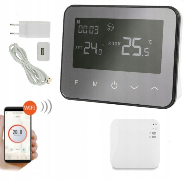 Кімнатний термостат WT-20 використовується для регулювання температури в системах центрального опалення. Підтримує комфортну або економну температуру в залежності від встановленої програми та часу. Зменшує витрати на електроенергію, знижуючи температуру, коли користувачів немає. Пульт управління має вбудований датчик температури повітря і бездротовим способом підключається до контролера, підключеного до печі центрального опалення. Термостатом можна керувати за допомогою смартфона за допомогою спеціальної програми (доступна для завантаження).