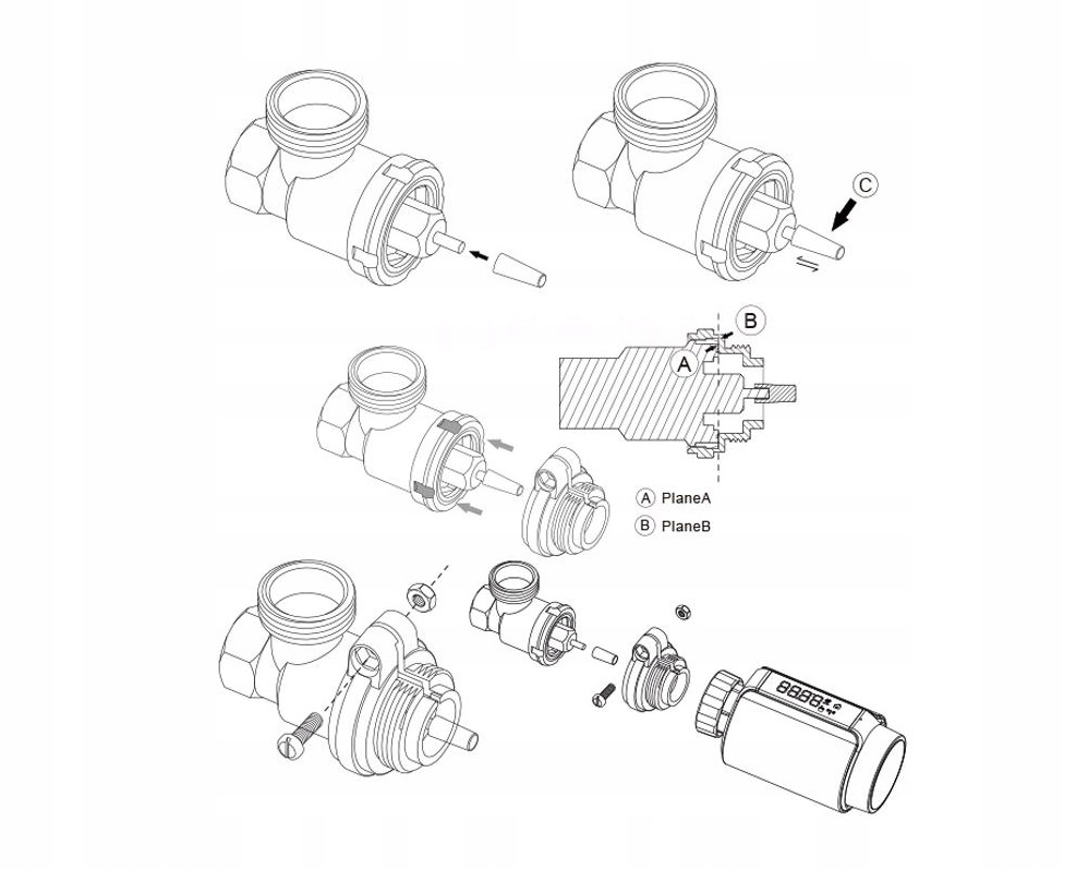 - Три перехідники, що входять у комплект, дають змогу встановити 99% вентилів радіаторів.