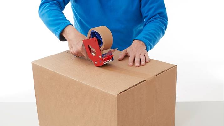 Дизпенсер Tesa® для ручного наклеювання пакувальних стрічок шириною до 50 мм , оснащений висувним лезом, що захищає від випадкових травм, і системою, яка дозволяє регулювати натяг і контролювати силу розмотування стрічки.