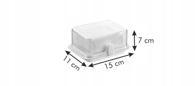 Ємність виготовлена з високоякісного пластику, який використовується в медицині та фармації. Він ідеально підходить для гігієнічного зберігання вершкового масла в холодильнику.