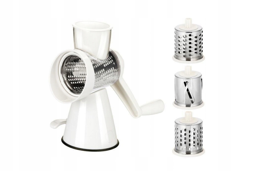 ідеально підходить для легкого та швидкого тертя та нарізки. Шліфувальна машина є універсальною, має 4 -барабатну терну, яка дозволяє готувати панірувальні сухарі, а також невеликі або густі шліфування та нарізання овочів. Він також ідеально підходить для тертя макаронних виробів "Julienne", для тертя фруктів, горіхів, шоколаду, сиру тощо. Шліфувальна машина була виготовлена зі спеціально загартованих, дуже міцних пластмас, а барабатка була виготовлена з високоякісної нержавіючої сталі. Він має штовхач, який гарантує безпечне використання, швидке та стабільне кріплення на поверхні дуже ефективним вакуумним всмоктувальним всмоктувальним всмоктувальним всмоктувальним всмоктувальним всмоктувальним всмоктувальним всмоктувальним всмоктуванням.