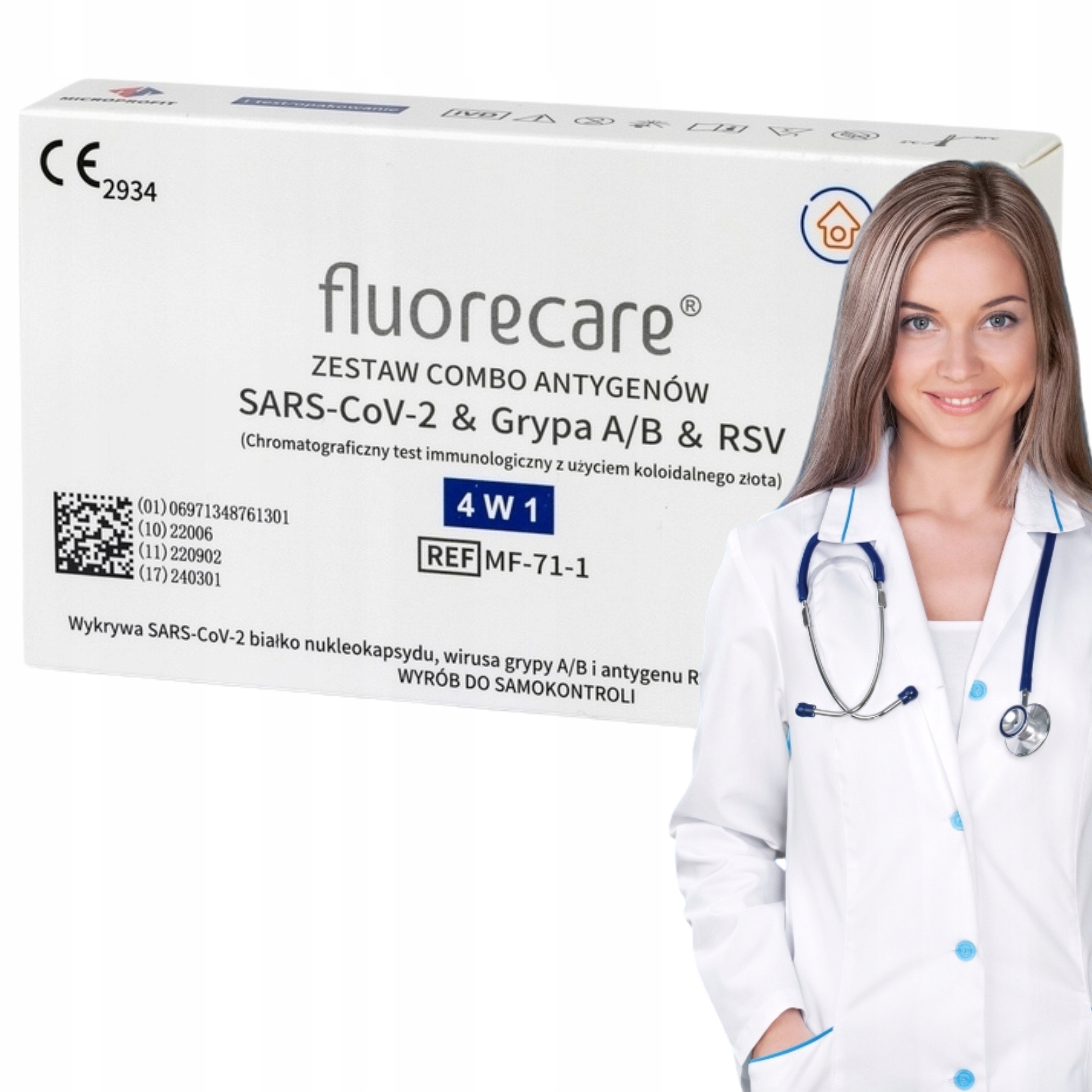 Fluorecare — це імунохроматографічний тест для домашньої діагностики in vitro, призначений для якісного диференціального виявлення білкового антигену вірусного нуклеокапсиду: