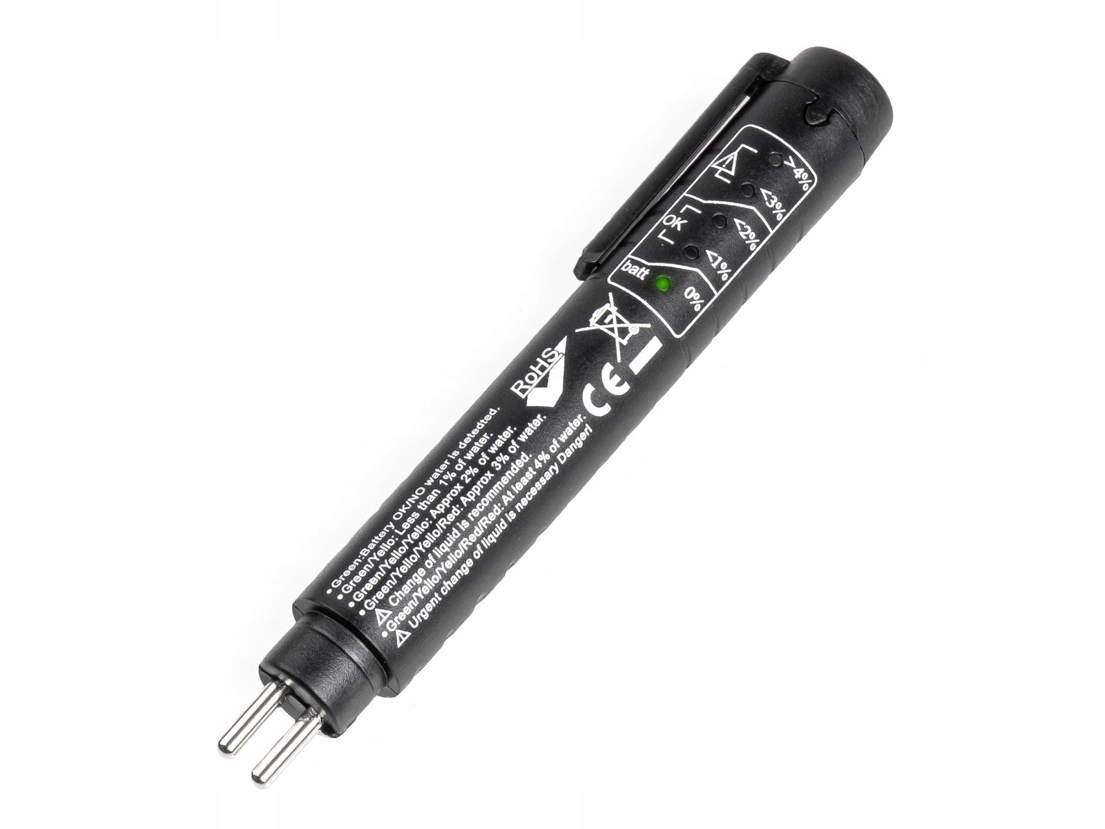 Компактний тестер гальмівної рідини. Він дозволяє миттєво виміряти вміст води в гальмівній рідині, незалежно від моделі автомобіля. Просто занурте електроди тестера в бачок гальмівної рідини і прочитайте індикацію контрольних діодів. Пристрій здатний тестувати багато типів гальмівних рідин (DOT 3, DOT 4, DOT 5, DOT 5.1).