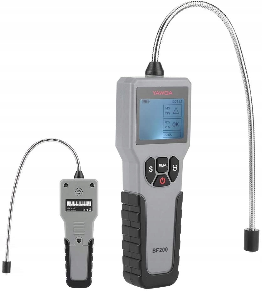 Тестер гальмівної рідини цей пристрій вимірює відсоток води в гальмівній рідині.Гальмівна рідина не повинна містити більше ніж 1,5% води, умовно допускається вміст води приблизно до 3%. Якщо вище цього значення, гальмівну рідину слід негайно замінити.