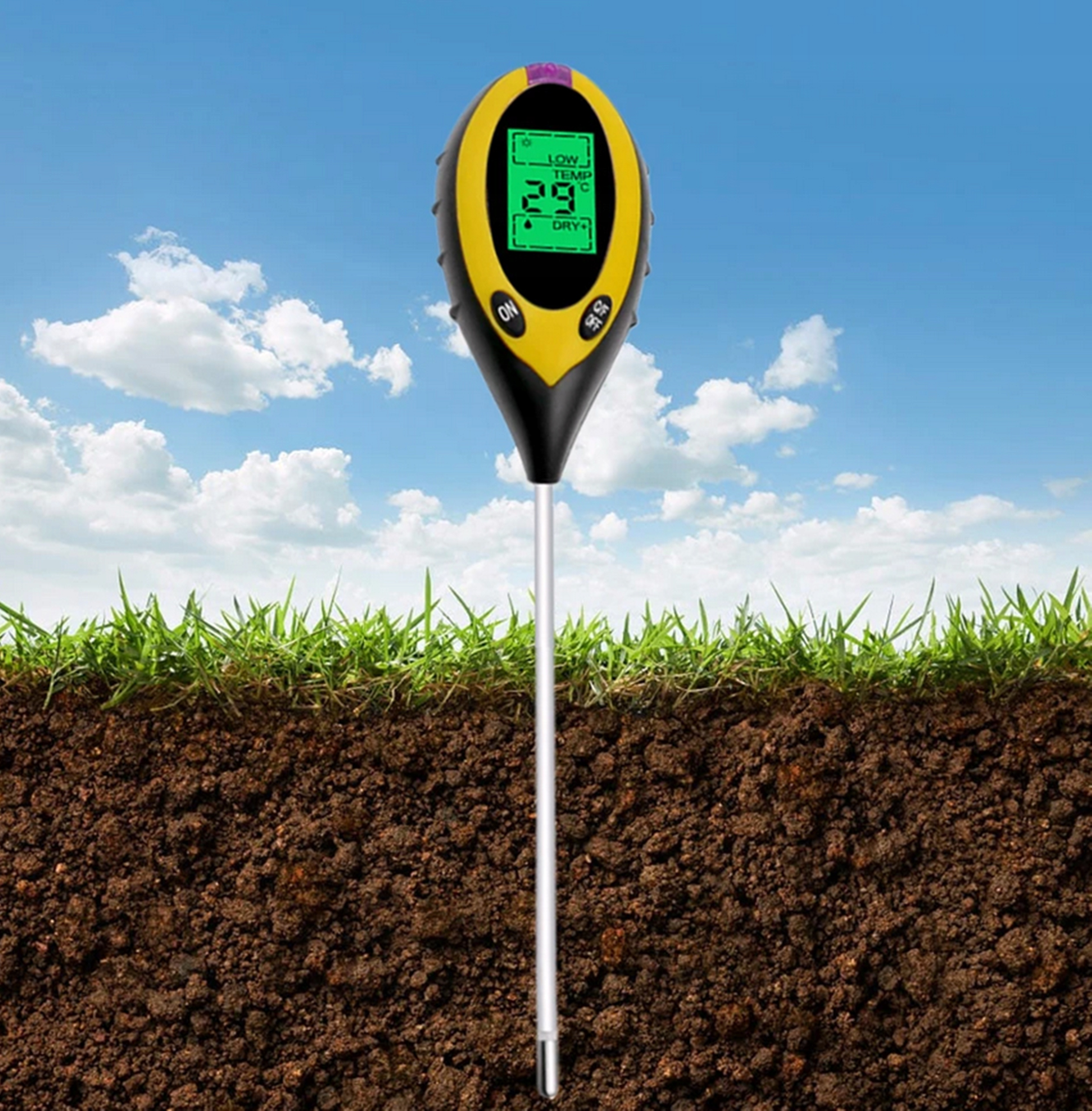 Представляємо наш вимірювач ґрунту 4 в 1. Його функції дуже різноманітні, він може вимірювати вологість ґрунту, температуру, pH ґрунту та інтенсивність сонячного світла. Це найкращий інструмент для моніторингу здоров’я та росту рослин.