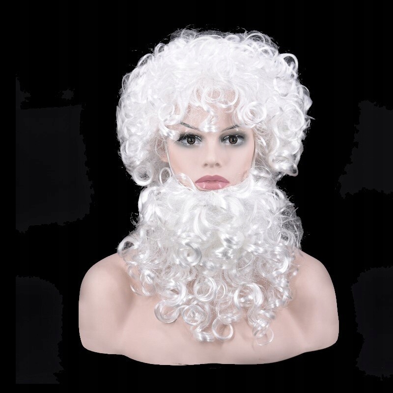 TG63178 АФРО ПЕРУКА ДЛЯ ДІДА МОРОЗА, КОСТЮМ БІЛОГО АНГЕЛА СУКНЯ АНГЕЛА