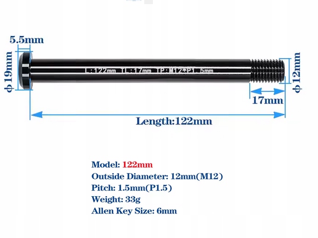 Thru Axle Axis жорстка вісь 122 мм M12x1.5
