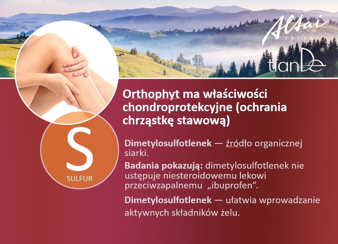 До складу гелю «Ортофіт» входить диметилсульфоксид >. Незалежно від складної назви, що відноситься до хімічних формул, в основі цієї речовини лежить натуральна сірка, яку отримують при переробці деревини. Діметилсульфоксид - нетоксична гіпоалергенна речовина, яка входить до складу багатьох харчових БАД.