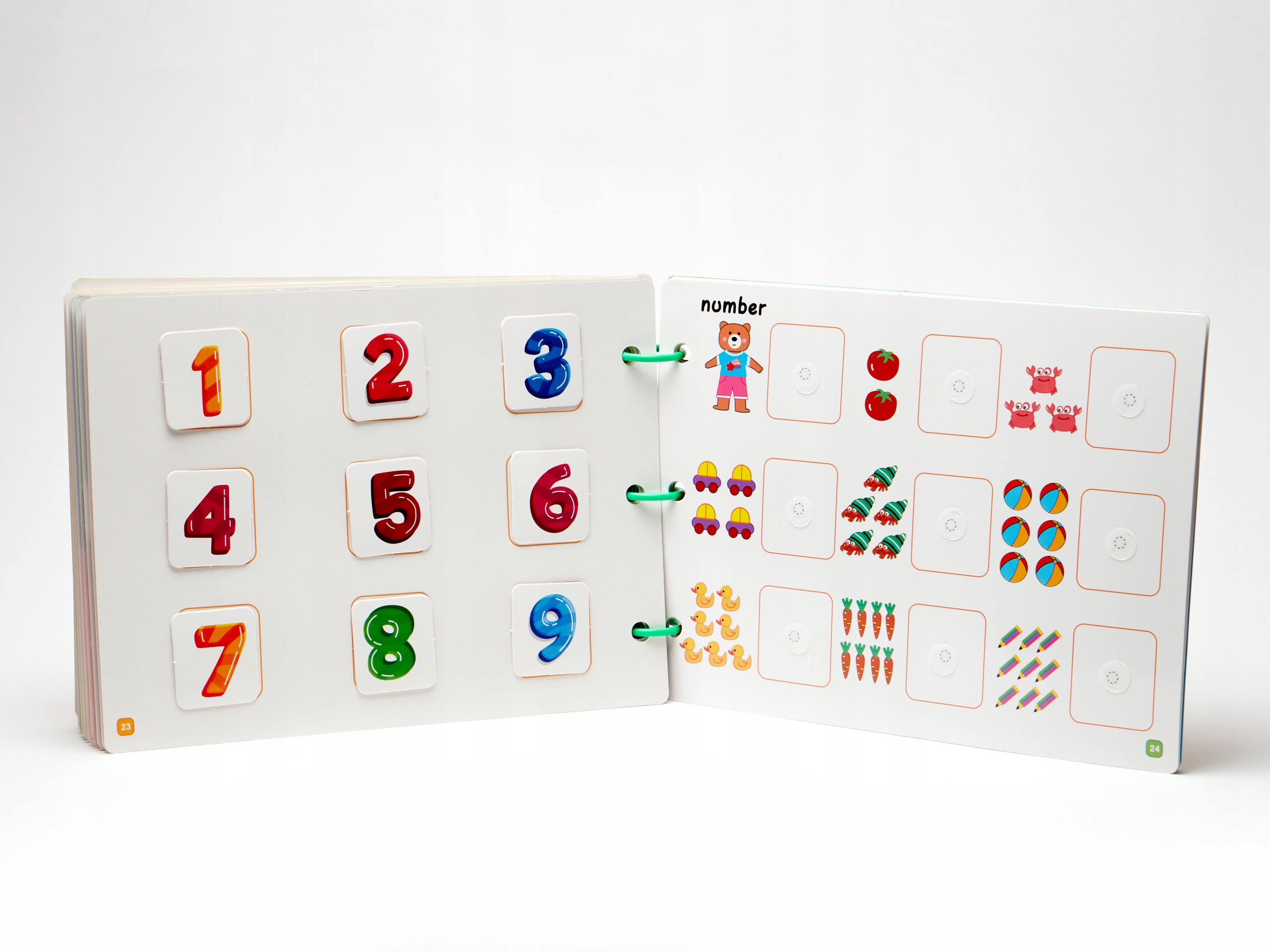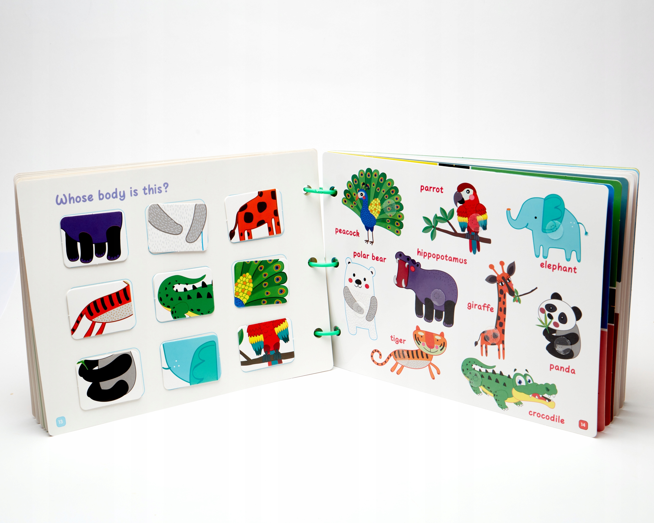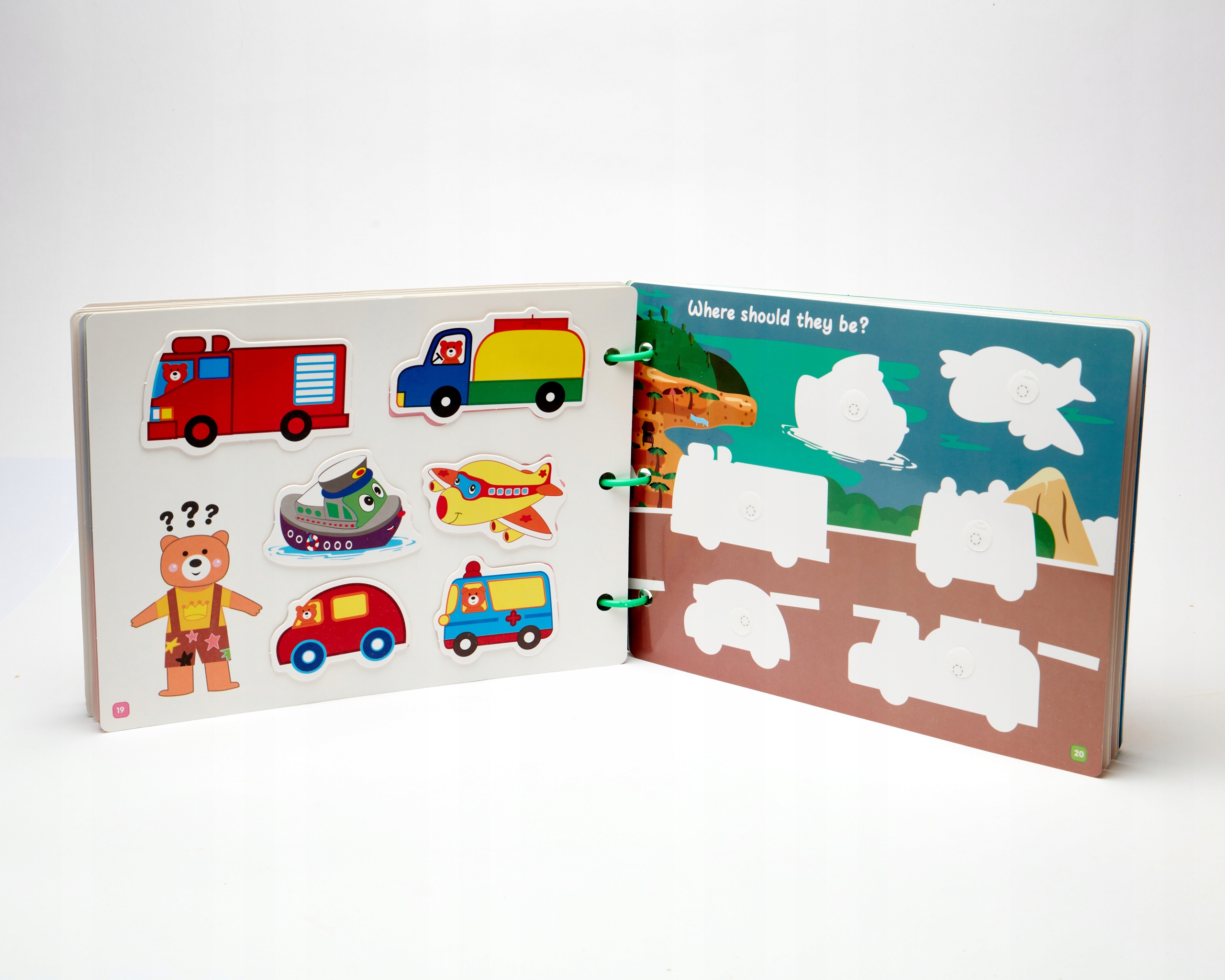 Книга складається з 32 сторінок, на яких можна знайти багато різноманітних завдань, що дозволяють вивчати кольори, тварин, координацію око-рука та форми.