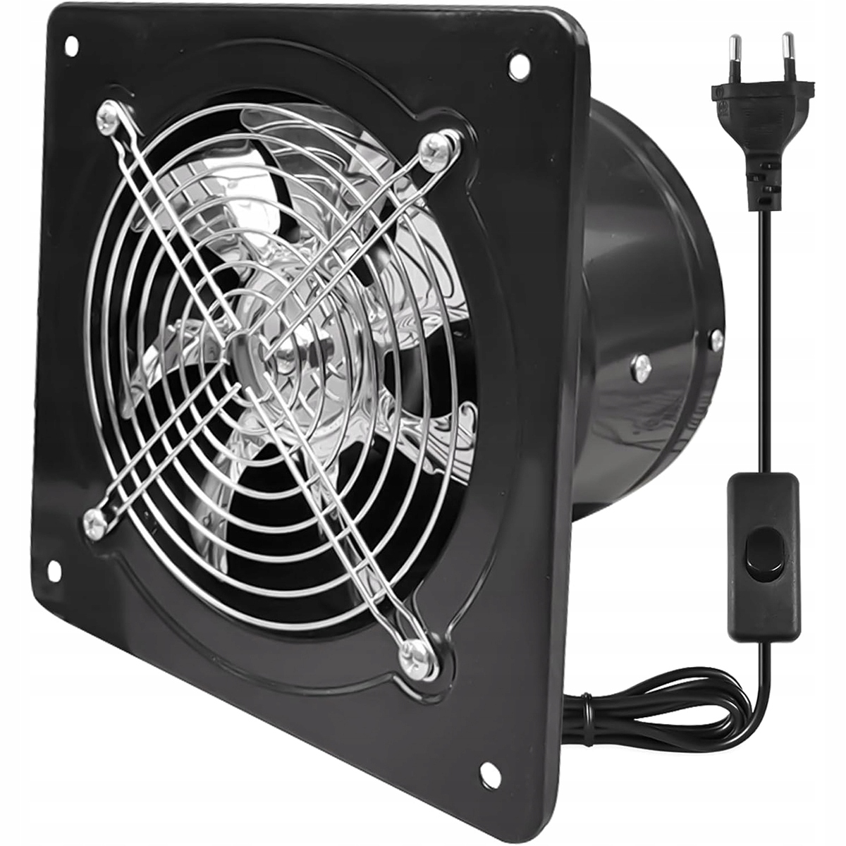 Витяжний вентилятор для ванної кімнати 150 мм, тихий, 525 м³/год із зворотною заслінкою. Міцний металевий настінний вентилятор із розеткою ЄС для кухні, ванної кімнати, гаража, підвалу (чорний)